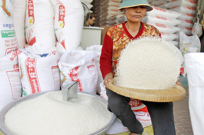 A woman at a rice shop in Phnom Penh, Cambodia. PHOTO: XINHUA