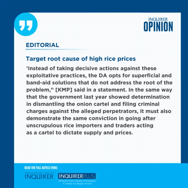 #Articles Target root cause of high rice prices. Since December last year, the Department of Agriculture (DA) has been announcing measures to address the stubbornly high prices of ricenews / January 13, 2025Comment (0) (17)