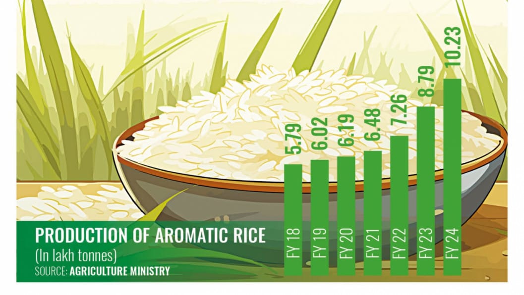 #News Aromatic rice production nearly doubles in seven years. Baharam Khan, Sukanta Halder 10.23 lakh tonnes of aromatic rice was produced in FY24, up from 5.79 lakh tonnes in ricenews / January 26, 2025Comment (0) (29)