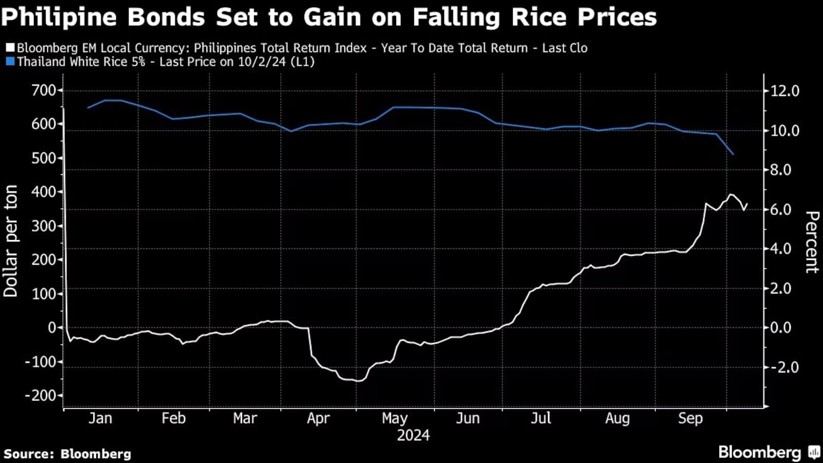 #News Philippine Bonds Seen Getting Tailwind From Falling Rice Prices By Malavika Kaur Makol and Karl Lester M. Yap (Bloomberg) — Philippine sovereign bonds are seen extending gains as falling ricenews / Comment (0) (31)