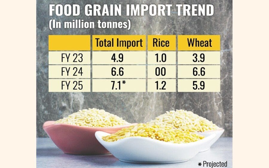 After showing a record import of 6.62 million tonnes in FY24, wheat imports stood at 5.5 million tonnes until mid-June and its import volume is expected to reach 5.75 million tonnes by the end of FY25.