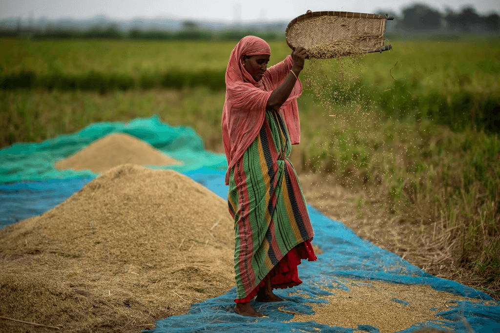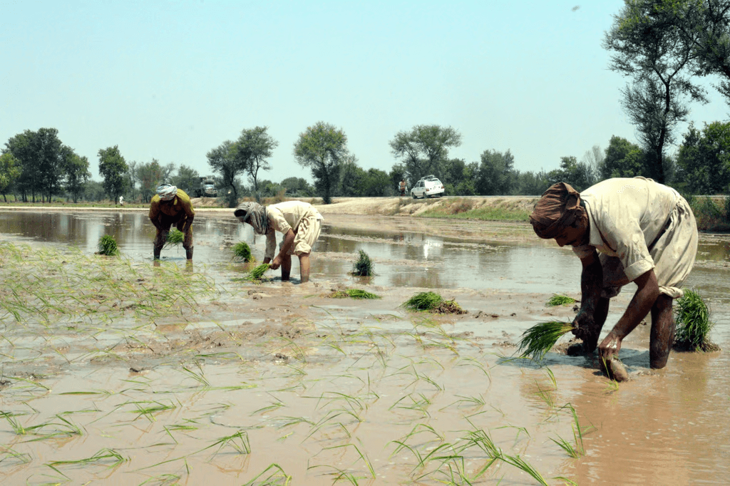 Rice is a water-guzzling crop that thrives in conditions of abundant water availability.
