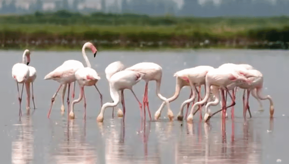 “This is sufficient for the rice to grow, but decidedly less attractive to flamingos, which must splash around in the water,” he said.