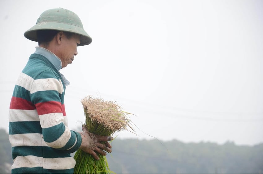 2. According to the people, partly because the fields are deep, the areas must be drained and planted at the same time; partly because of the cold and rainy weather, they must take advantage of the dry days to plant rice. Therefore, during this time, every household is busy, everyone in the family is mobilized to participate in the fields. Young people and old people pull up and bundle seedlings; those who cannot plant prepare the soil and transport seedlings from high fields to deep fields.
