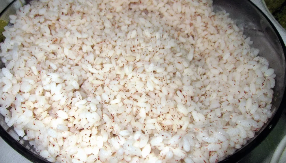 The grains are yellowish pink (from being parboiled) with reddish outer layers. Rose matta rice maintains its pink hue as well as its flavour on cooking. Like all brown or parboiled rice, red matta has a lengthy cooking time and requires extra water.